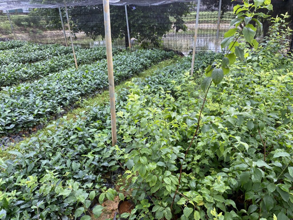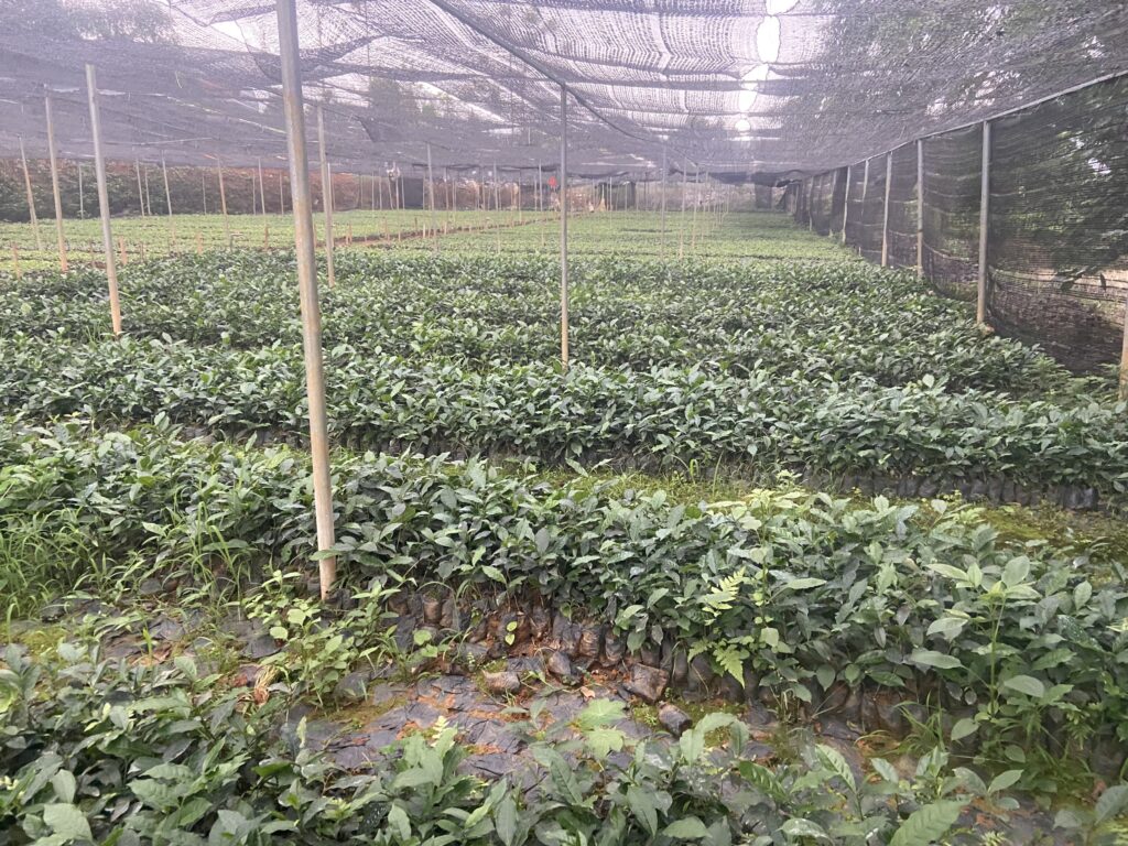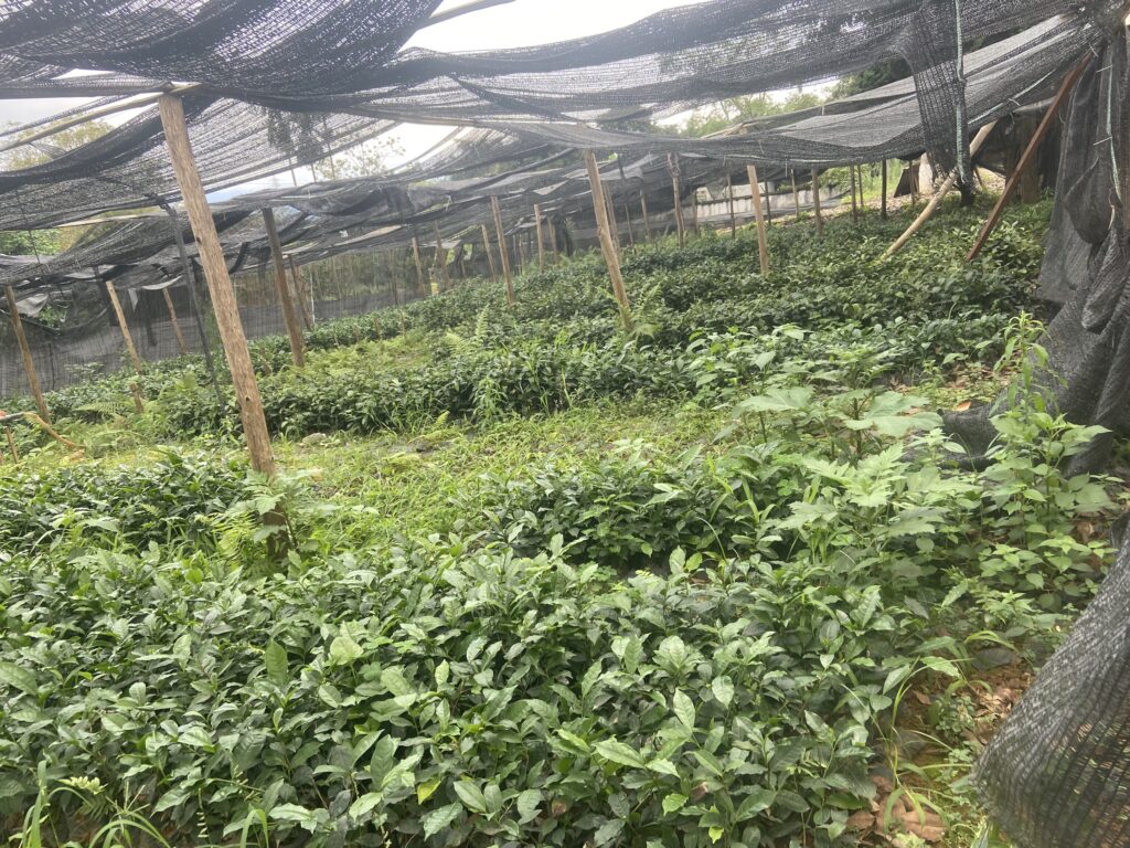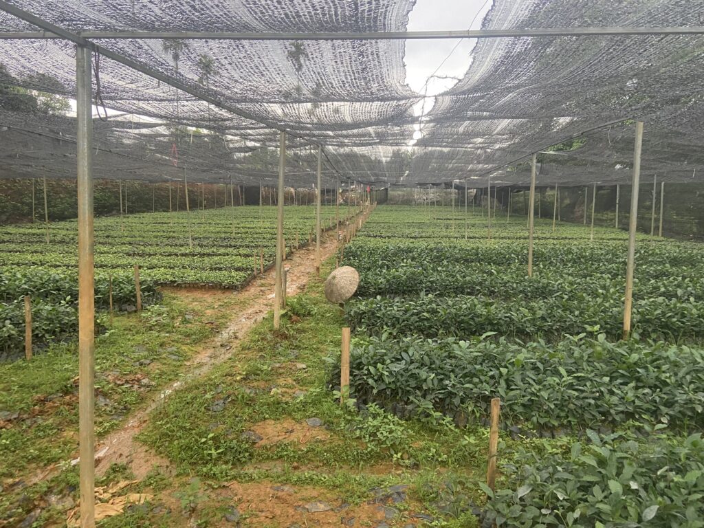 Before being planted on the hill, young tea plants are first grown in a nursery garden, where they are covered with mesh to protect them from unfavorable weather conditions until they reach a certain size.