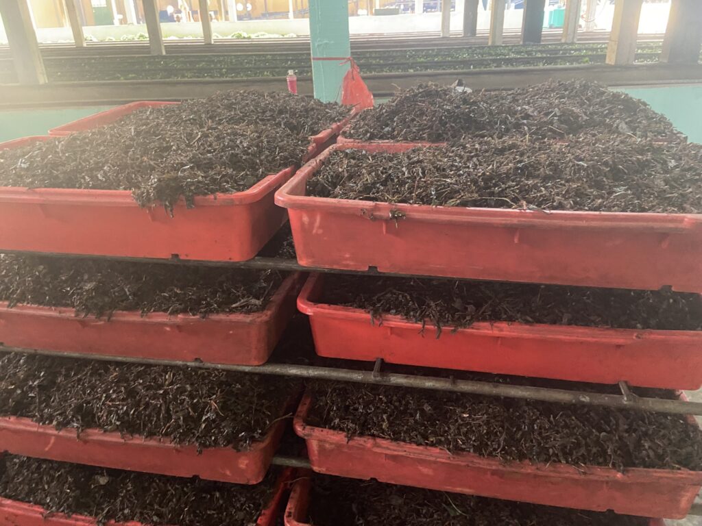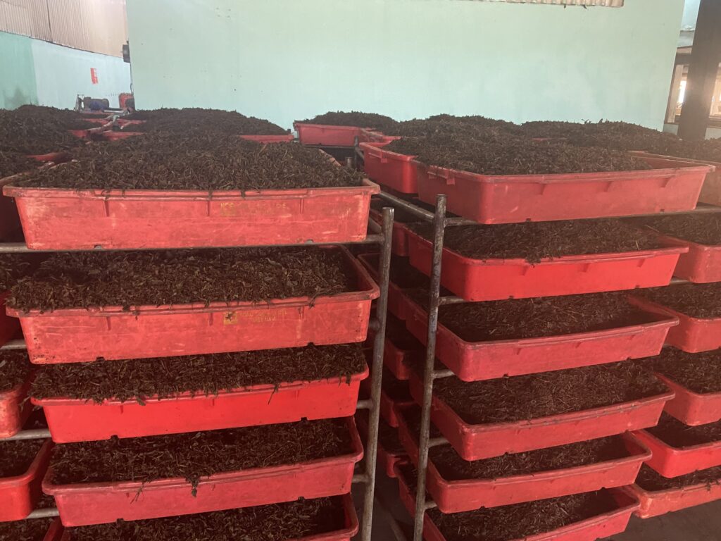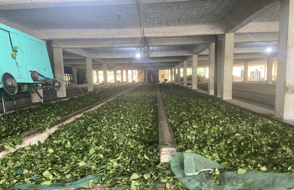 The leaves are thinly spread on withering troughs or clean racks and left for several hours to reduce moisture content. This softens the leaves, making them more pliable for the rolling process.