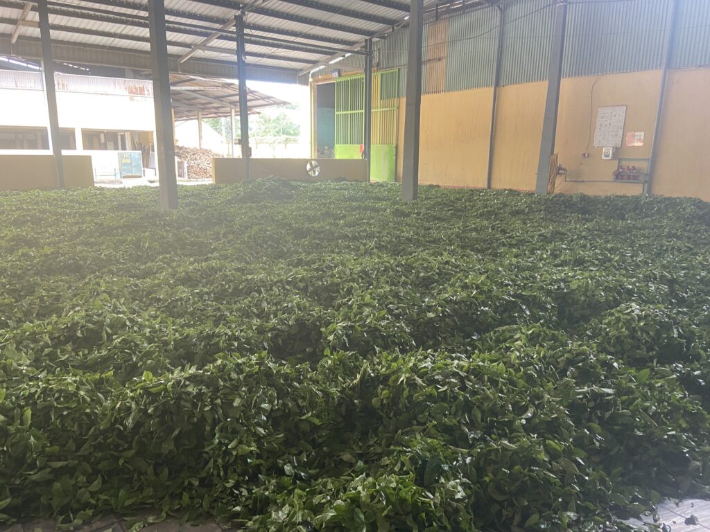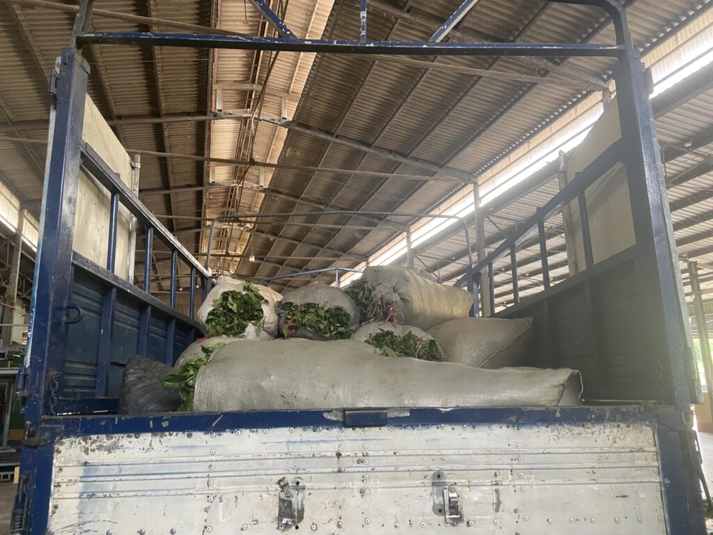 Next, the leaves are lightly withered in clean trays to slightly reduce moisture, making them softer and more pliable for the following steps.
