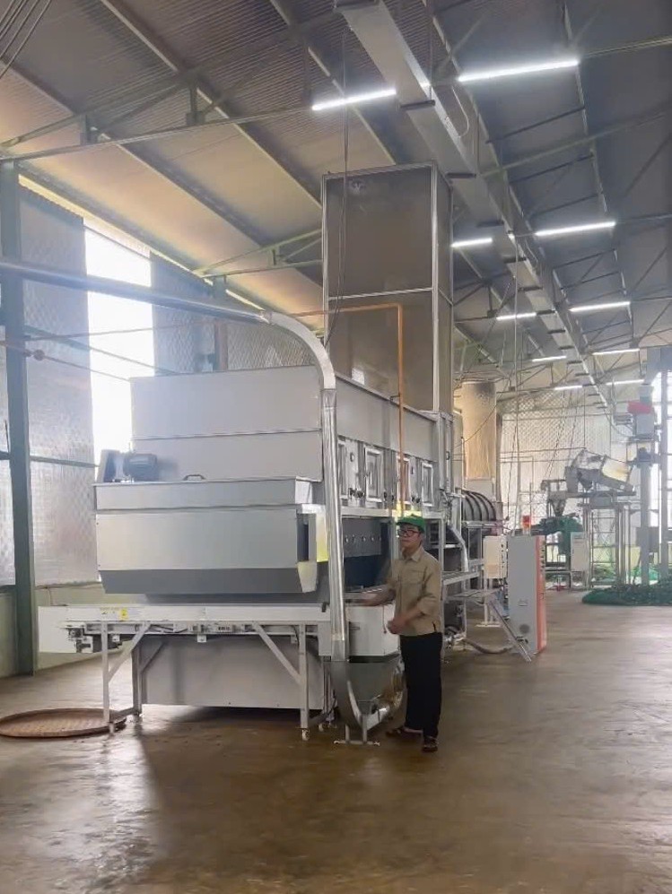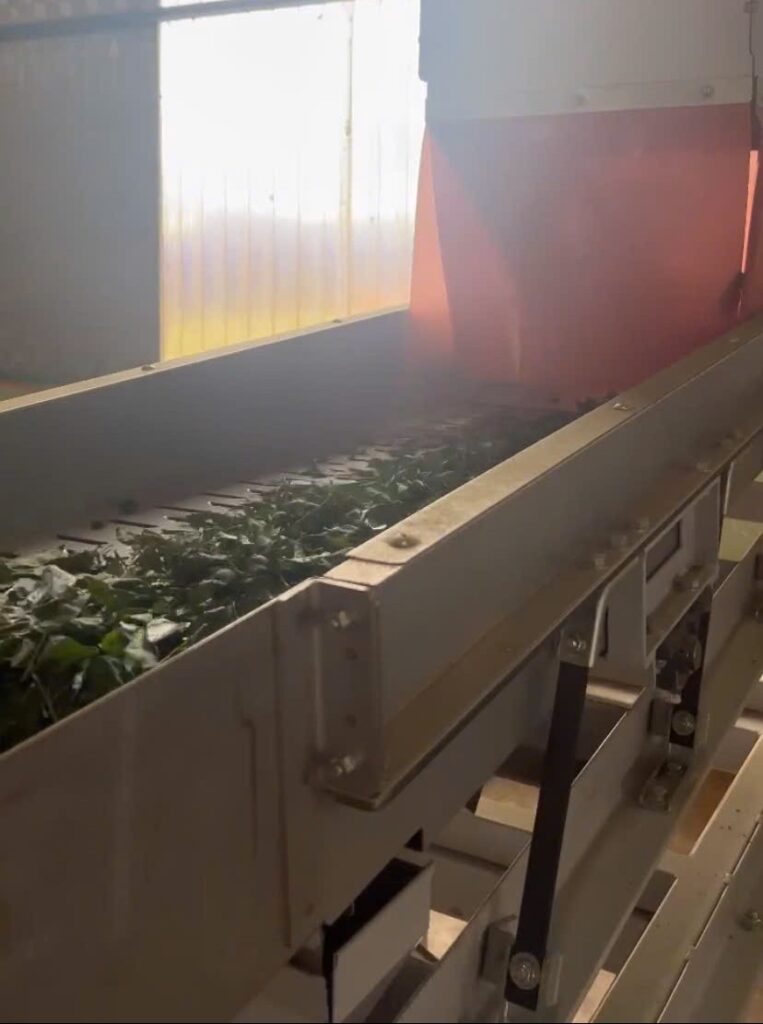 The rubbed tea leaves are placed on a ventilated mesh conveyor and passed through a hot-air drying tunnel. Hot air circulates evenly, reducing moisture content while preserving the leaf’s green color and aroma.